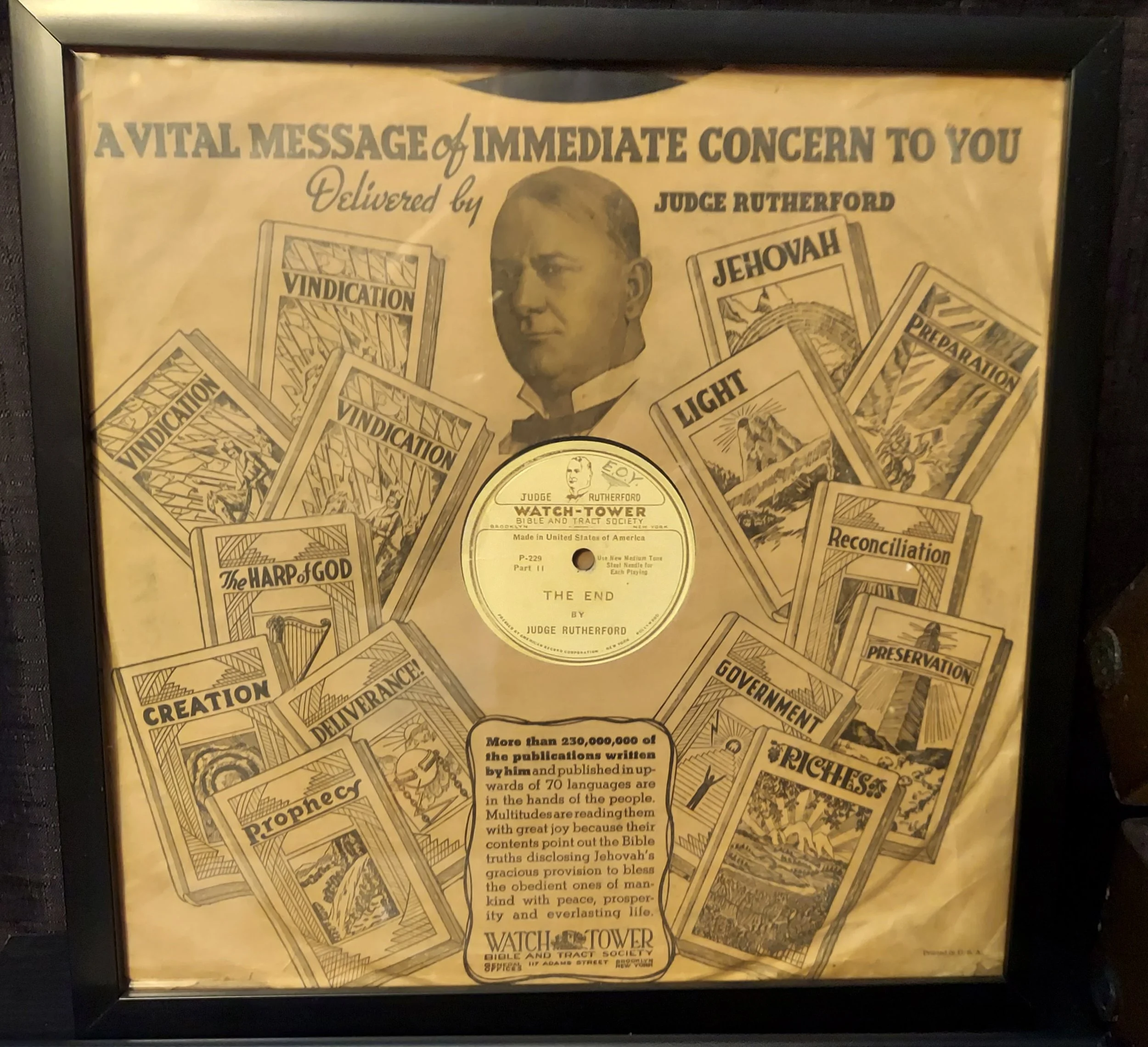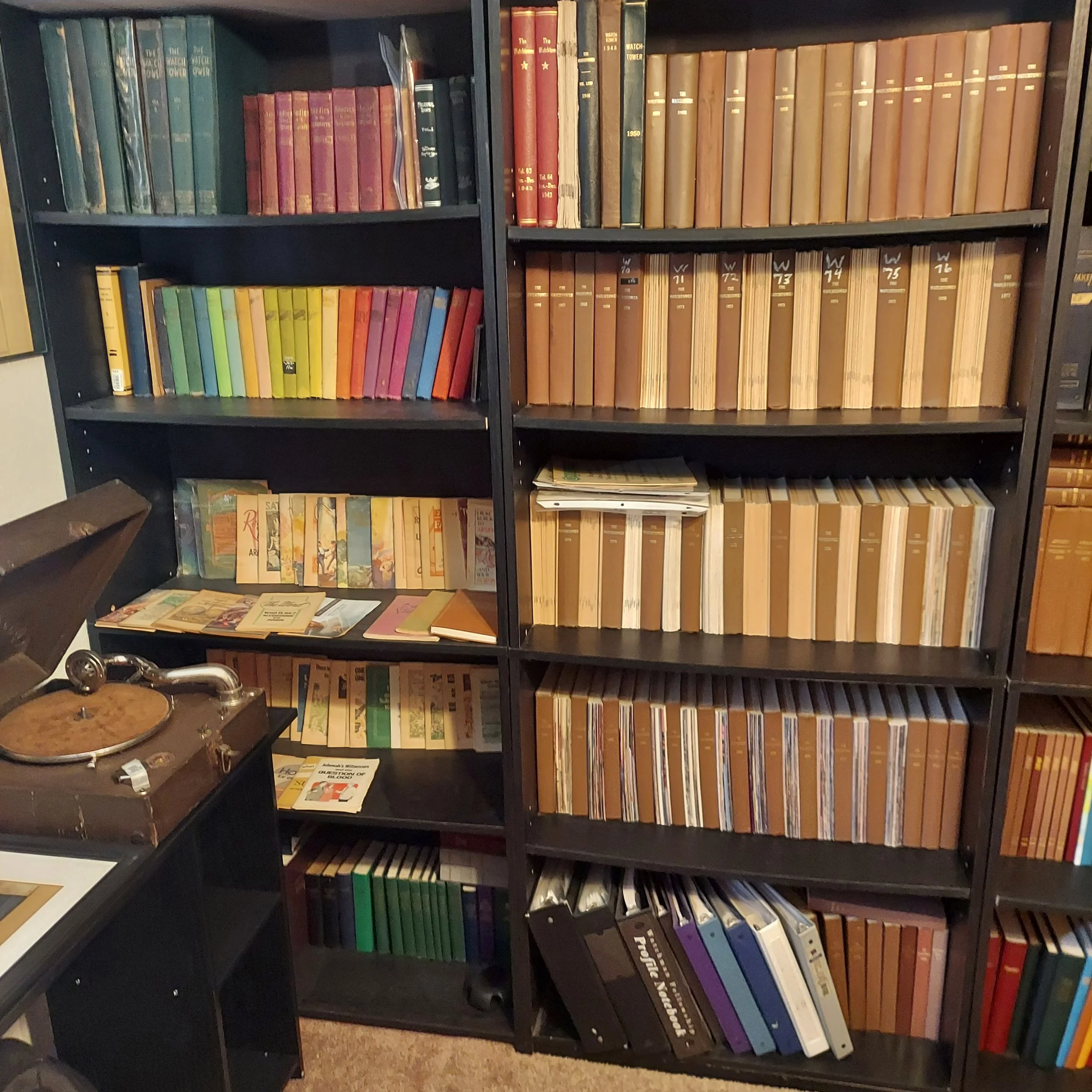 1930’s record player issued by the Watchtower Bible and Tract Society. These were used in the early Witnesses door-to-door work.